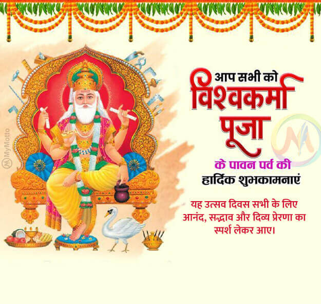 विश्वकर्मा पूजा के पावन पर्व की हार्दिक शुभकामनाएंयह उत्सव दिवस सभी के लिए आनंद, सद्भाव और दिव्य प्रेरणा का स्पर्श लेकर आए।