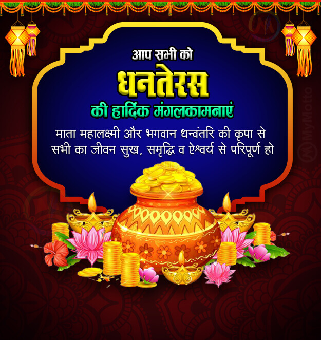 आप सभी को धनतेरस की हार्दिक शुभकामनाएं