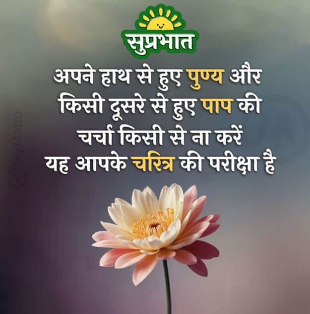 अपने हाथ से हुए पुण्य और किसी दूसरे से हुए पाप की चर्चा किसी से ना करें। यह आपके चरित्र की परीक्षा है।