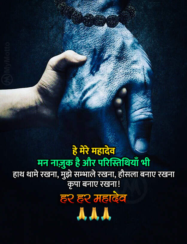 हे मेरे महादेव मन नाजुक है और परिस्तिथियाँ भी हाथ थामे रखना, मुझे सम्भाले रखना, हौसला बनाए रखना, कृपा बनाए रखना !हर हर महादेव