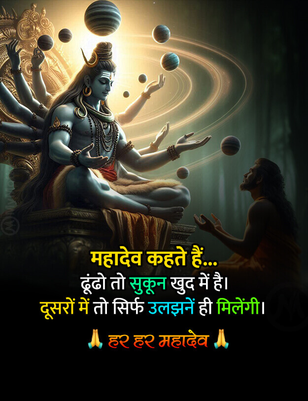 महादेव कहते हैं... ढूंढो तो सुकून खुद में है। दूसरों में तो सिर्फ उलझनें ही मिलेंगी।हर हर महादेव🙏🙏🙏