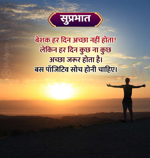 सुप्रभातबेशक हर दिन अच्छा नहीं होता ! लेकिन हर दिन कुछ ना कुछ अच्छा जरूर होता है। बस पॉजिटिव सोच होनी चाहिए।
