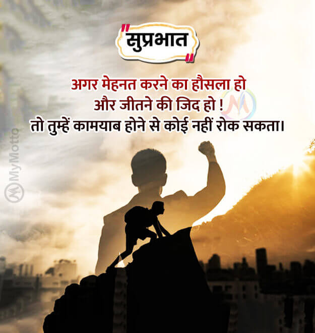 सुप्रभातअगर मेहनत करने का हौसला हो और जीतने की जिद हो ! तो तुम्हें कामयाब होने से कोई नहीं रोक सकता।