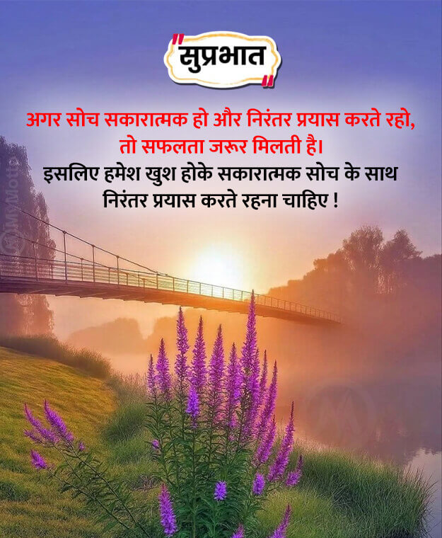 अगर सोच सकारात्मक हो और निरंतर प्रयास करते रहो, तो सफलता जरूर मिलती है।इसलिए हमेश खुश होके सकारात्मक सोच के साथ निरंतर प्रयास करते रहना चाहिए !