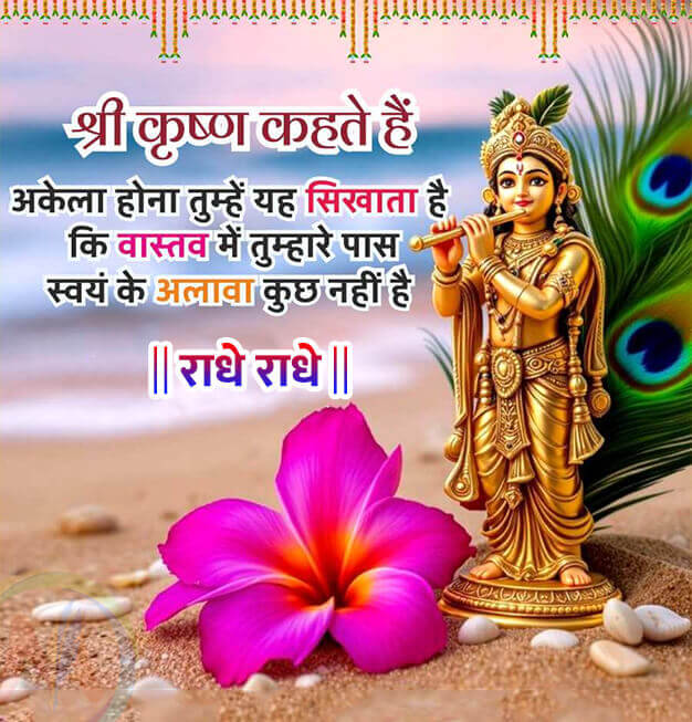 श्री कृष्ण कहते हैं ... अकेला होना तुम्हें यह सिखाता है कि वास्तव में तुम्हारे पास स्वयं के अलावा कुछ नहीं है। || राधे राधे ||
