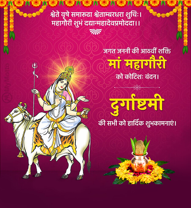 श्वेते वृषे समारूढा श्वेताम्बरधरा शुचिः । महागौरी शुभं दद्यान्महादेवप्रमोददा ।।जगत जननी की आठवीं शक्ति मां महागौरी को कोटिशः वंदन।दुर्गाष्टमी की सभी को हार्दिक शुभकामनाएं।