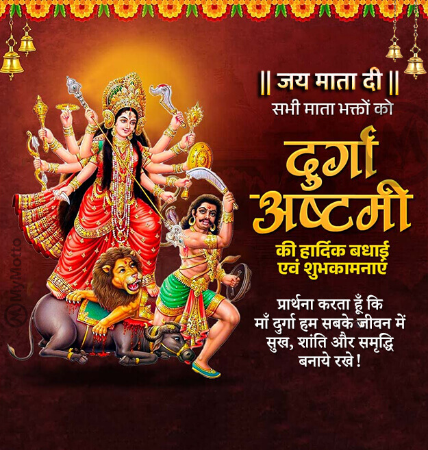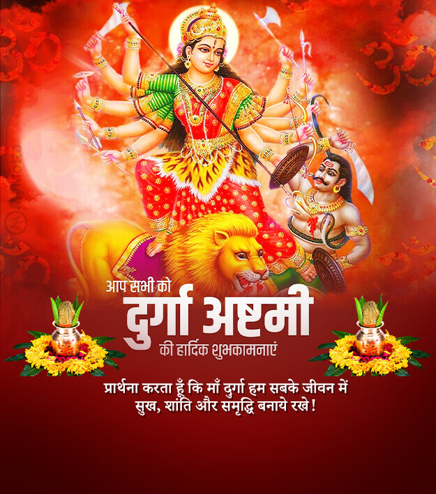 आप सभी को दुर्गा अष्टमी की हार्दिक शुभकामनाएंप्रार्थना करता हूँ कि माँ दुर्गा हम सबके जीवन में सुख, शांति और समृद्धि बनाये रखे !