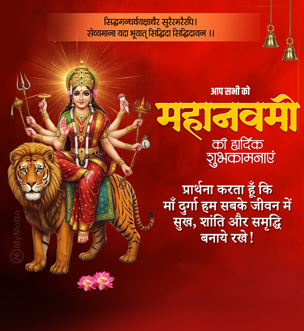 सिद्धगन्धर्वयक्षाद्यैर सुरैरमरैरपि। सेव्यमाना यदा भूयात् सिद्धिदा सिद्धिदायन ।।आप सभी को महानवमी की हार्दिक शुभकामनाएं। प्रार्थना करता हूँ कि माँ दुर्गा हम सबके जीवन में सुख, शांति और समृद्धि बनाये रखे !