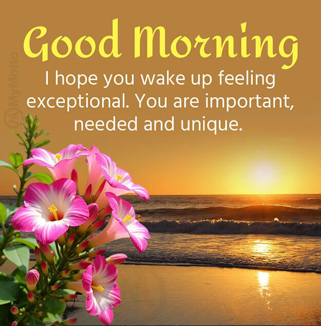 Good MorningI hope you wake up feeling exceptional. You are important, needed and unique.