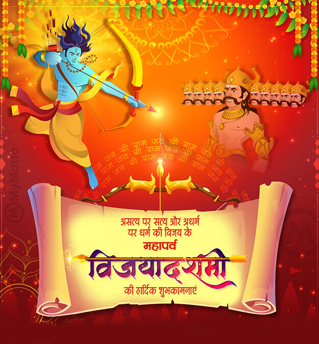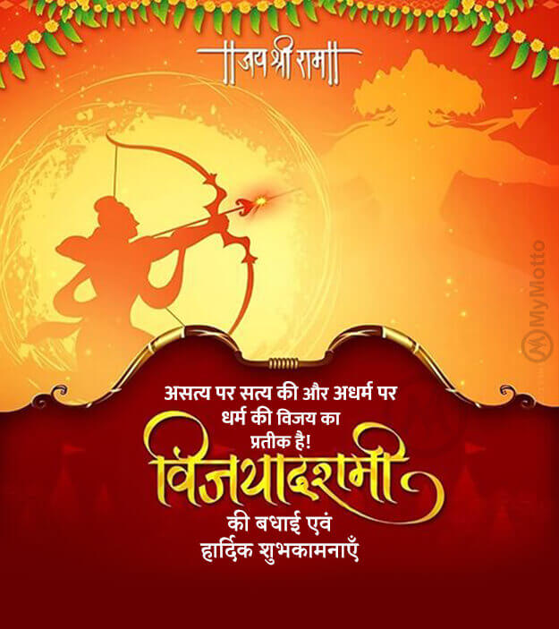 असत्य पर सत्य की और अधर्म पर धर्म की विजय का विजयादशमी की बधाई एवं हार्दिक शुभकामनाएँ