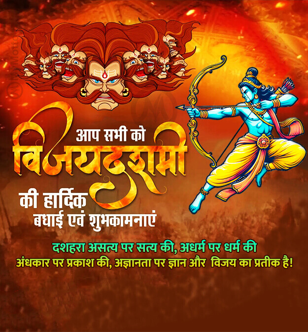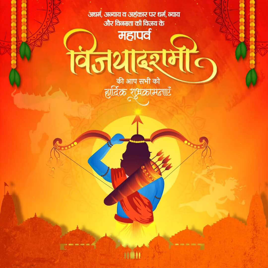 अधर्म पर धर्म की विजय के प्रतीक पर्वविजयदशमी की हार्दिक शुभकामनाएं